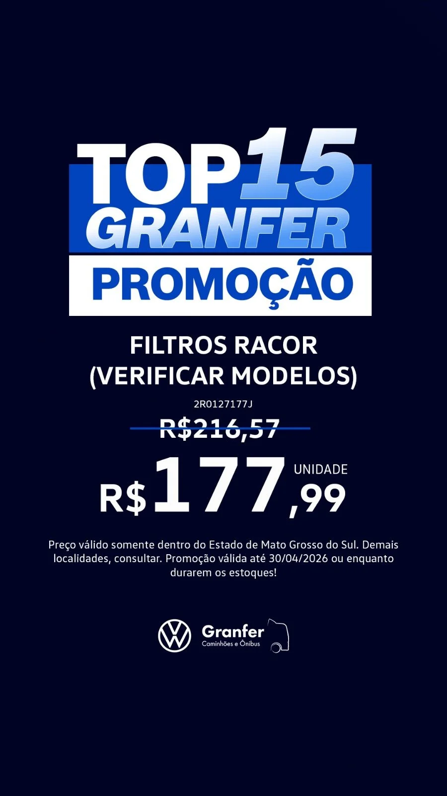 Ofertas válidas para as referências acima de acordo com chassis do veículo consulte seu vendedor.